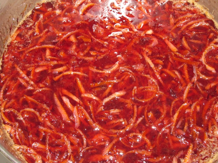 First of all, I didn’t have any Cara Cara Oranges. No matter – I wanted something bold, with a nice pop of colour to get me through these last few weeks of winter. Since Moro oranges are in season (and there were a couple of pounds of them sitting in my fruit bowl), I decided to use these tasty little morsels in my version. The striking rich red colour is just utterly amazing….like viewing a sunset in a jar.