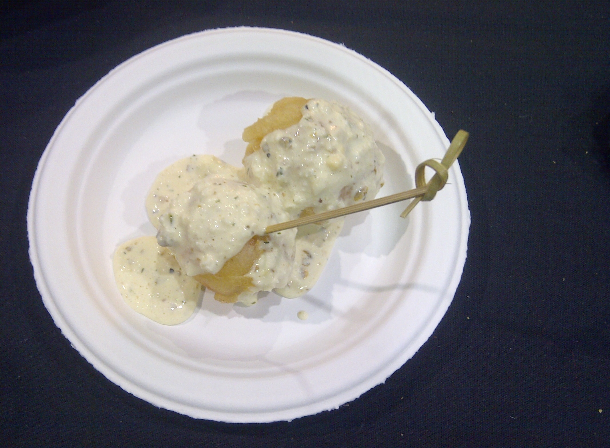Also billed as being new and notable to the show and serving delicious samples was Spur Gastropub. They were offering Ancho chili rubbed albacore tuna. Now anyone who knows me, knows that I adore fish. I could seriously eat fish every day…and tuna is one of my favorites. I also really detest wasting food, so it pains me when fish is prepared this badly. There were three of us who eagerly tucked into this dish. The tuna, was tough, rubbery and lacked any sort of flavour profile. Ughh…half the plate remained untouched and ultimately ended up in the trash bin. It’s a shame really, as this one sounded like it could have been amazing.