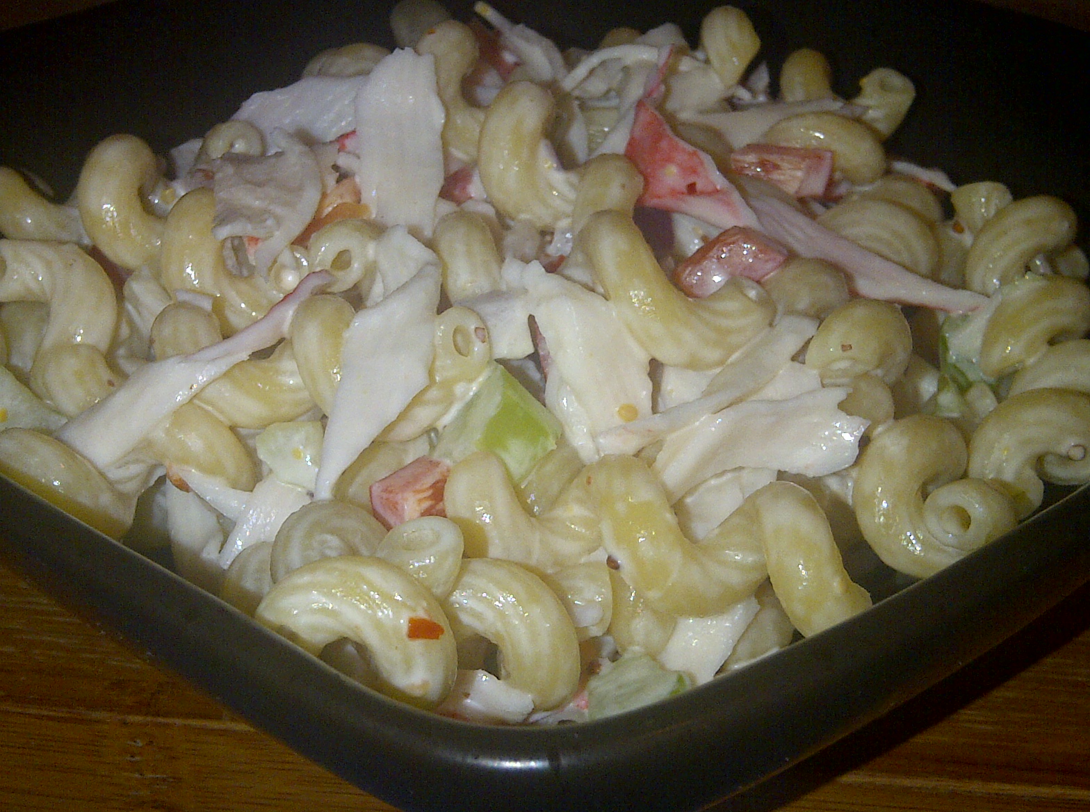 I’m a sucker for purchasing items on sale. One of the items I like to stock up on when it goes on sale is packages of imitation crab meat. Yes, I do realize that it isn’t real crab…but crab flavoured pollack or hake. Imitation Crab meat is one of the few “packaged” or processed items that I purchase but I find that it’s so convenient to have around the house when the end of the month rolls around and you stand in front of the fridge thinking to yourself…”now what’s for dinner?”. This dish is mostly made up of pantry and fridge/freezer staples and is relatively quick to prepare, so it makes a perfect dish to bring for potlucks and picnics.